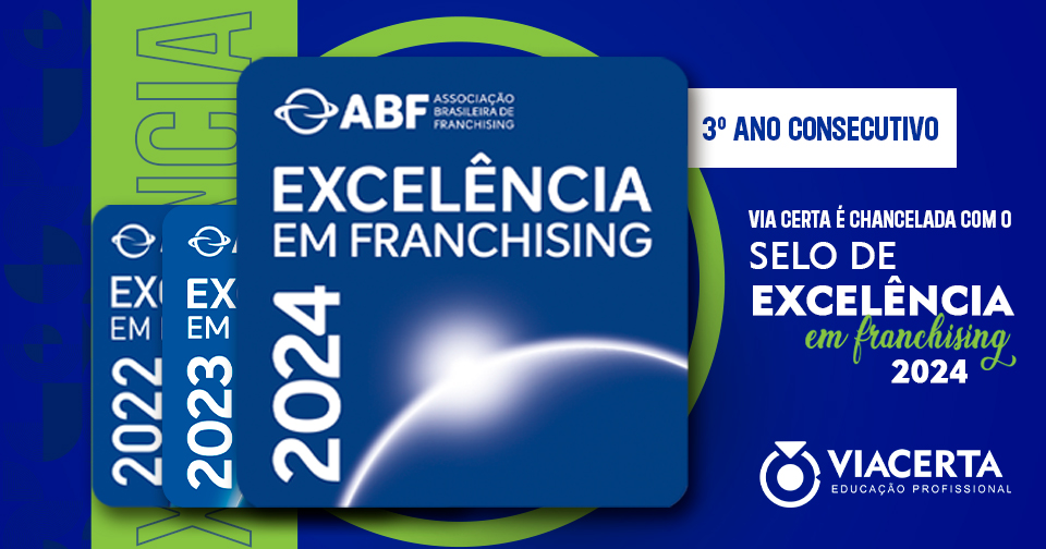 Grande conquista! A Via Certa está feliz em compartilhar que conquistamos, pelo terceiro ano consecutivo, o selo de excelência em franchising concedido pela ABF (Associação Brasileira de Franchising). Esse reconhecimento reforça nosso compromisso com a qualidade, transparência e excelência em nossas operações.